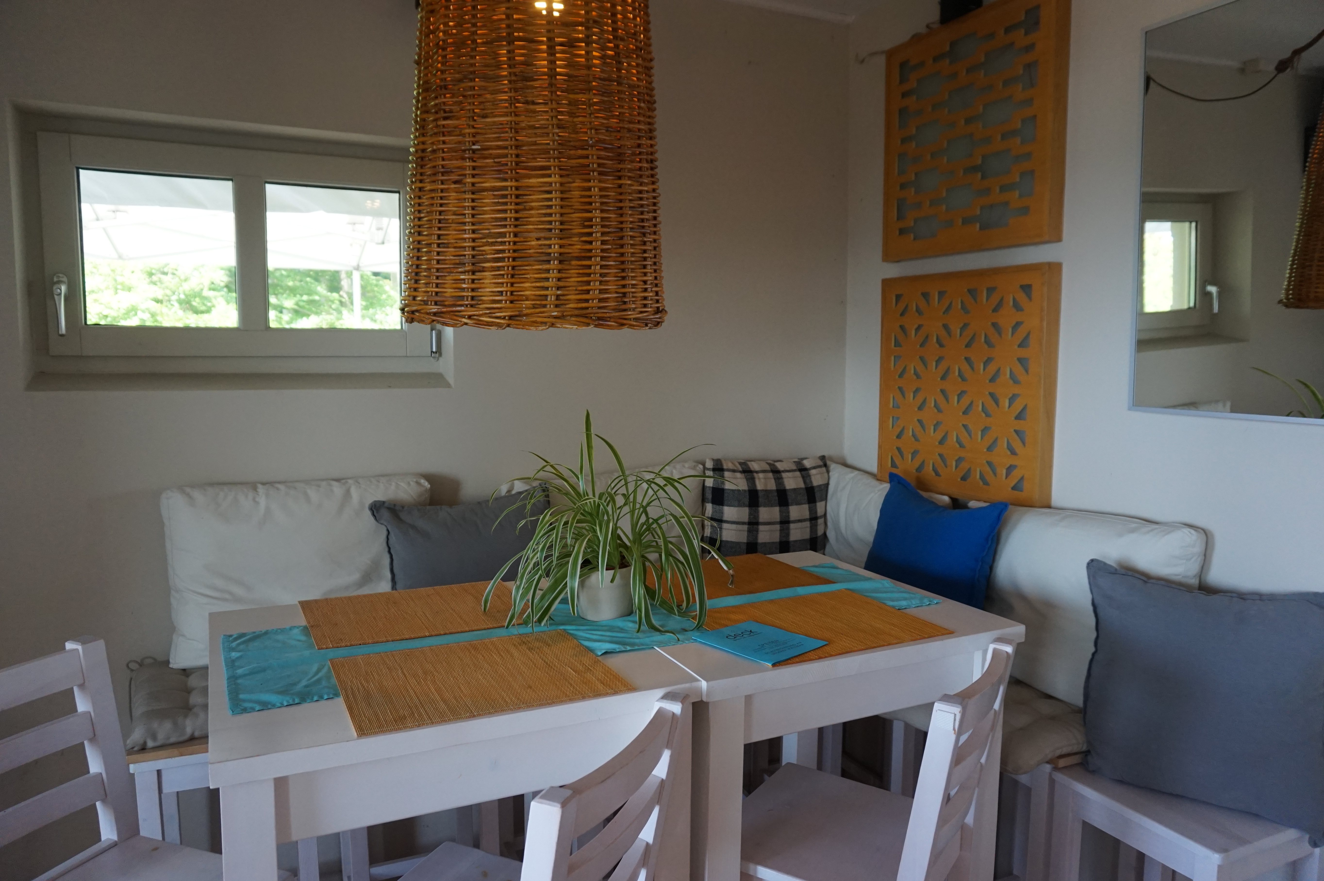 Schon beim Betreten der Terrasse umfängt dich eine Stimmung, als sei jemand mit einem feinen Gespür für Schönheit und Seele vorausgegangen. Der salzige Wind streicht zärtlich über die Haut, während leiser Ambient-Sound wie ein verspieltes Flüstern durch den Raum weht. Jede Tasse, jeder Stuhl, jedes Detail scheint hier mit Liebe ausgesucht – nicht als Dekoration, sondern als Einladung zum Verweilen, zum Staunen, zum Lächeln.