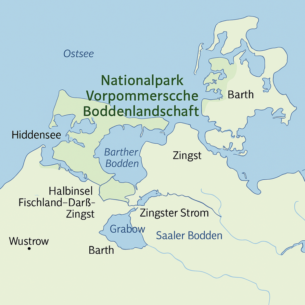 Der Nationalpark Vorpommersche Boddenlandschaft ist mit über 800 km² Fläche der größte deutsche Nationalpark an der Ostsee und umfasst ein einzigartiges Mosaik aus Land- und Wasserflächen. Er liegt im Norden Mecklenburg-Vorpommerns und schützt einen großen Teil der vorpommerschen Küstenlandschaft mit ihrer vielfältigen Tier- und Pflanzenwelt.